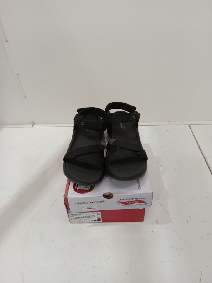 women's sketchers go walk flex sandal - size 7 - black (style: 140876)