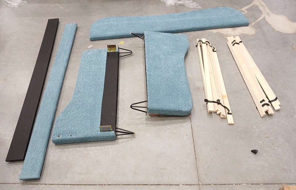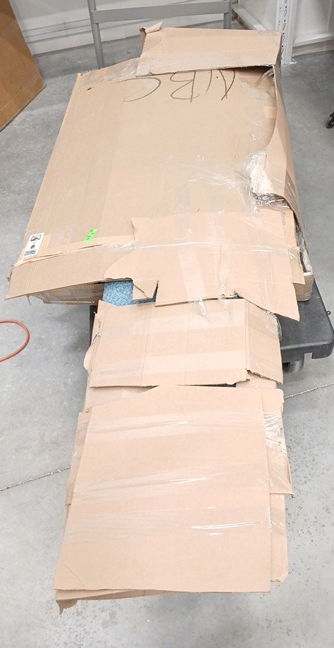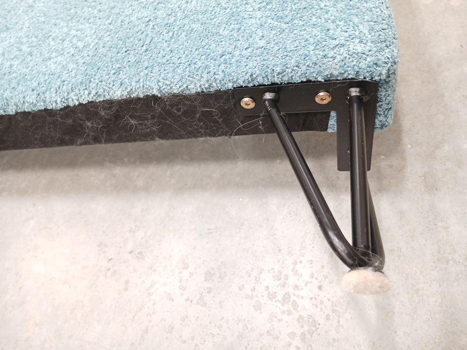 This item has pet hair on it as well as felt pads on its legs from its previous owner. This item appears to have some scratches on the arms. Additional hardware is required