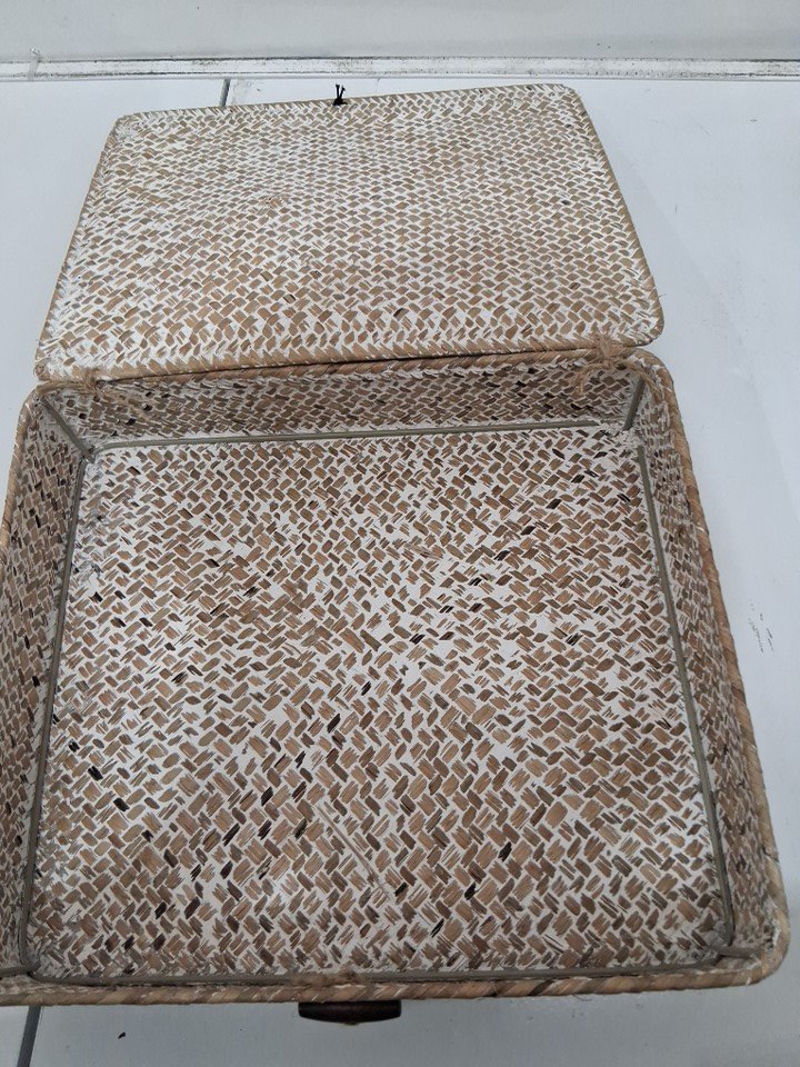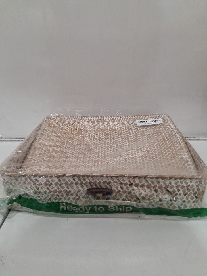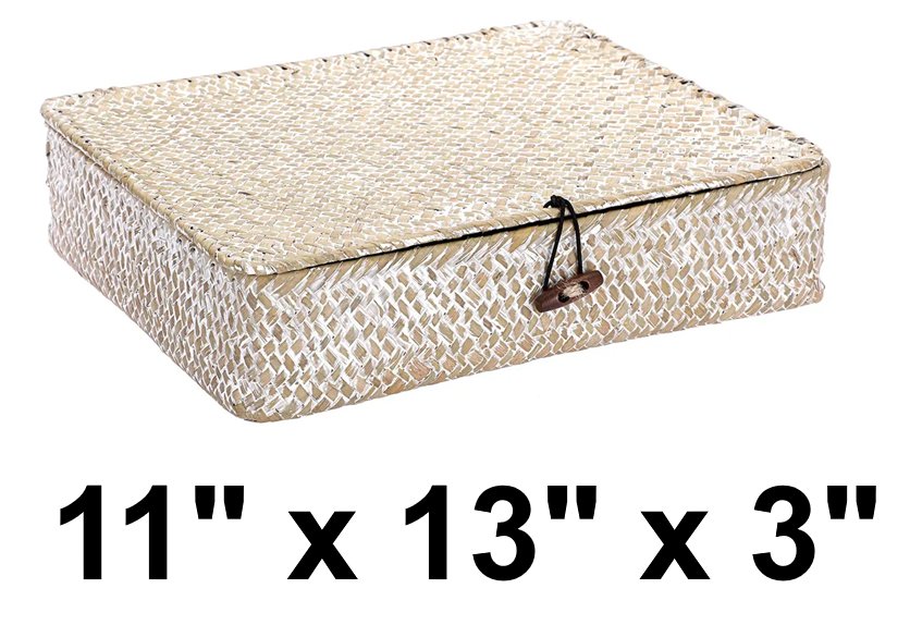 Whitewash Seagrass Basket with Lid Rectangular Decorative Storage Box - 11" x 13" x 3"