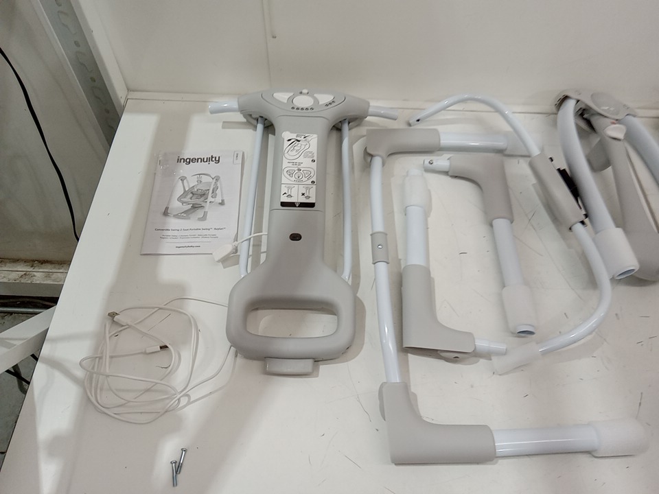 INGENUITY convertme 2-in-1 compact portable plug in automatic baby swing and infant seat - 0 to 9 months - 6lbs to 20lbs - grey (model: 12189-es)