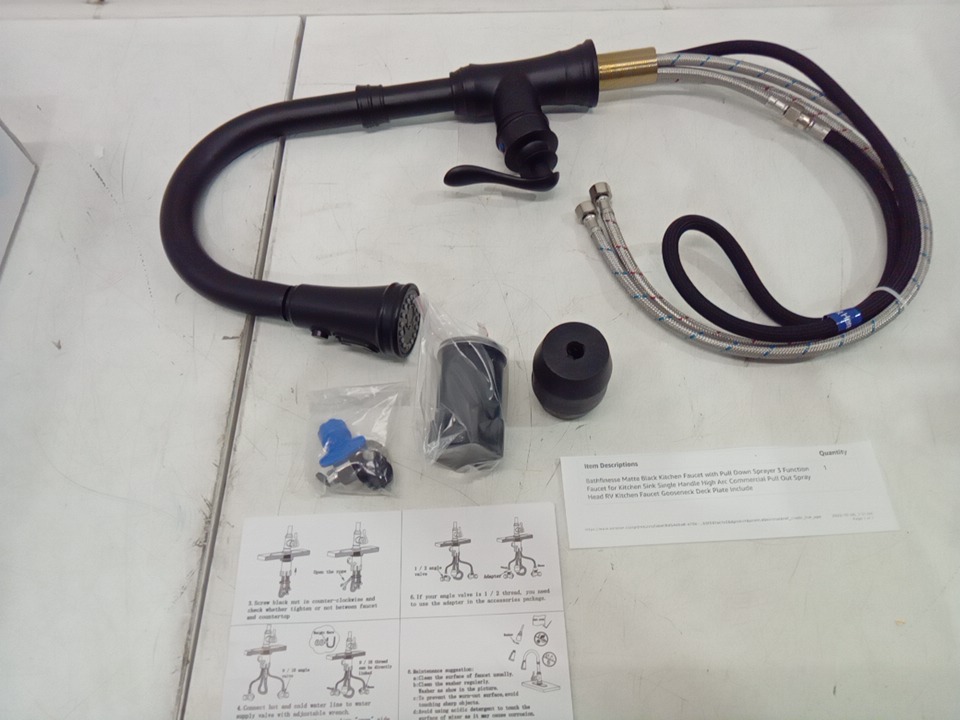 Bathfinesse ‎Kitchen Faucet with Pull Down Sprayer and 3 fuctions - matte black - (model:4651-B)