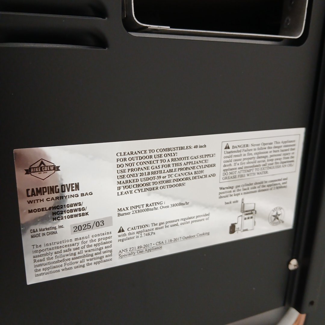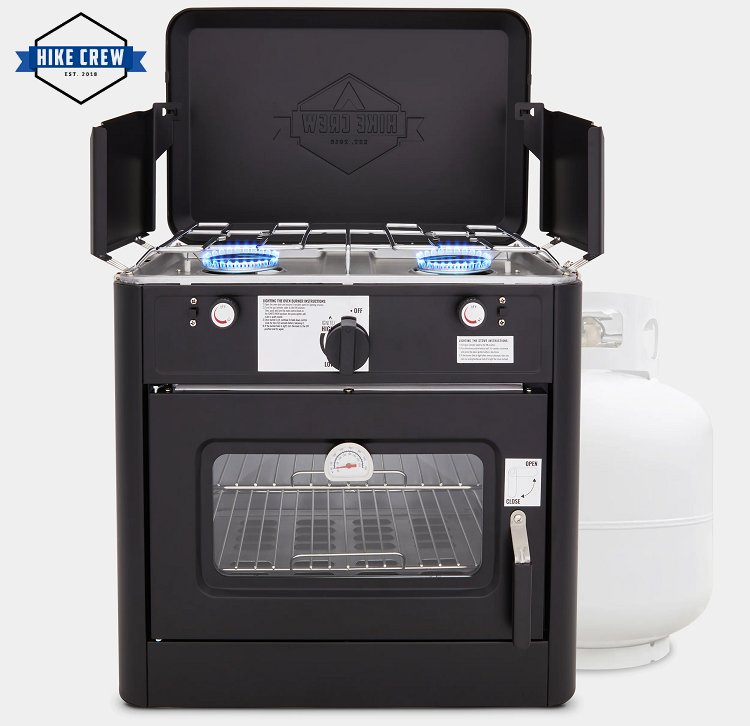 HIKE CREW GAS CAMPING OVEN - CSA Approved 2-Burner Stove & Camp Oven - BLACK (Model: HC210BWS)