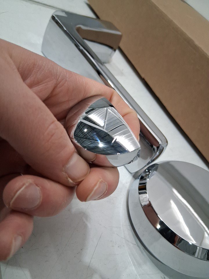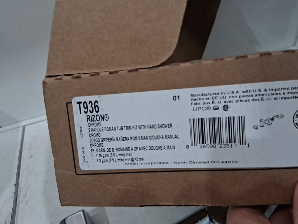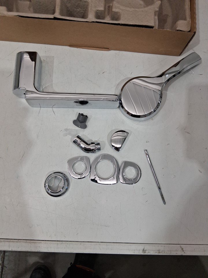 item is missing handles are all parts except some of the trim all parts for moen are replicable online there is some scratching due to improper shipping