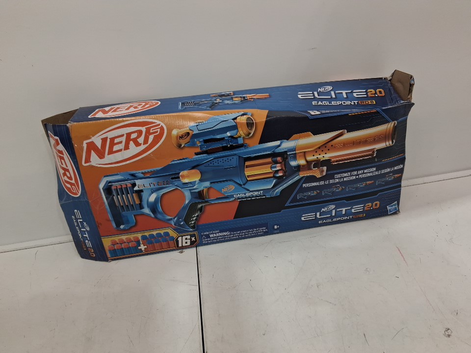 Nerf elite 2.0 eaglepoint rd-8 dart blaster & 8-dart drum with nerf scope - ages 8+ - orange/blue (model: FD423)