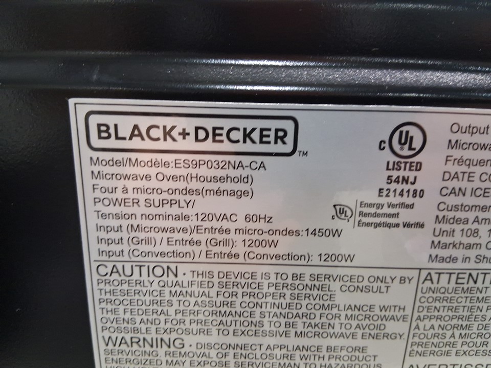 BLACK+DECKER 5-in-1 Microwave Oven with Air Fry, Bake, Roast and Convection Cooking - 0.9CU.FT - BLACK/SILVER (MODEL: ES9P032NA-CA)
