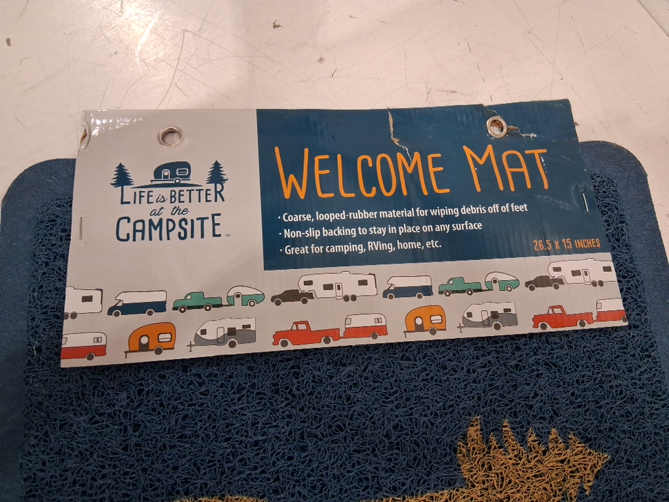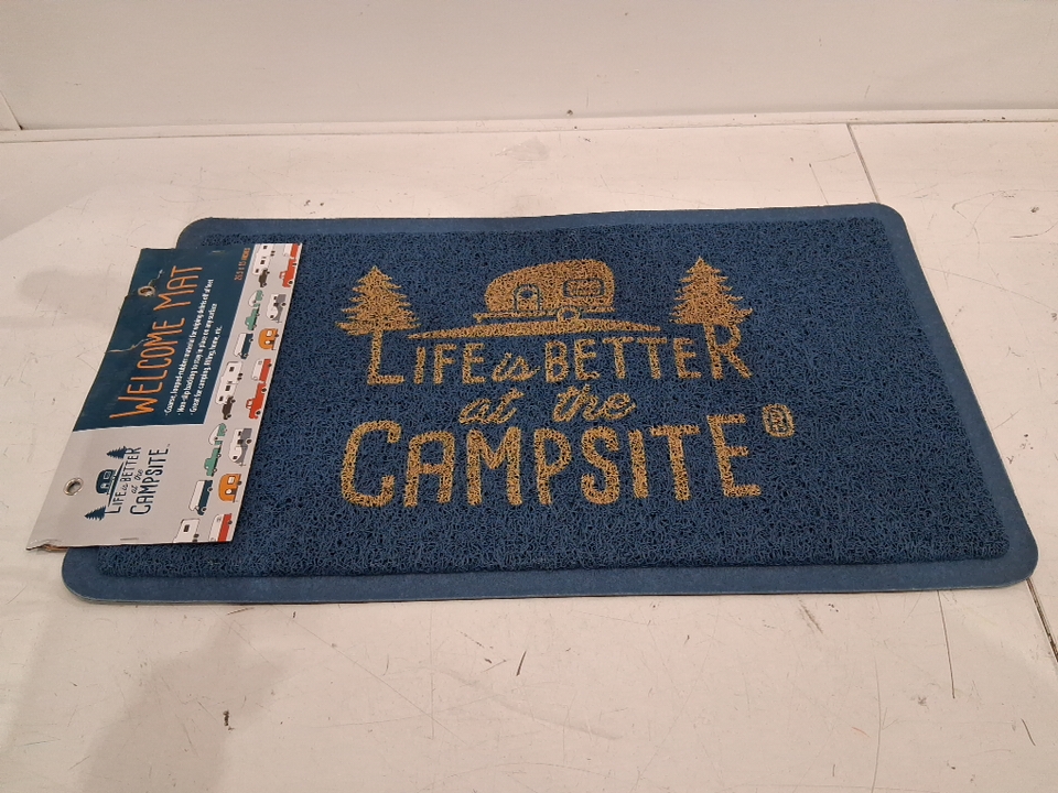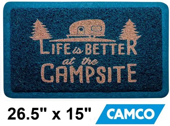 CAMCO LIFE IS BETTER AT THE CAMPSITE INDOOR/OUTDOOR MAT - 26.5"x 15" - Blue (MODEL: 53201)