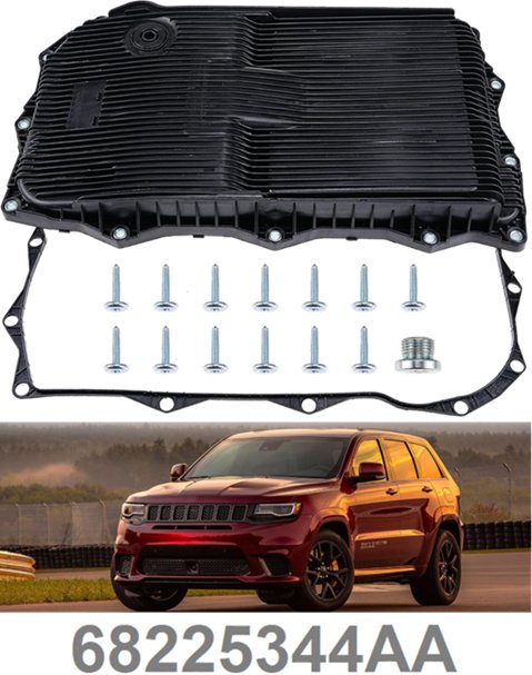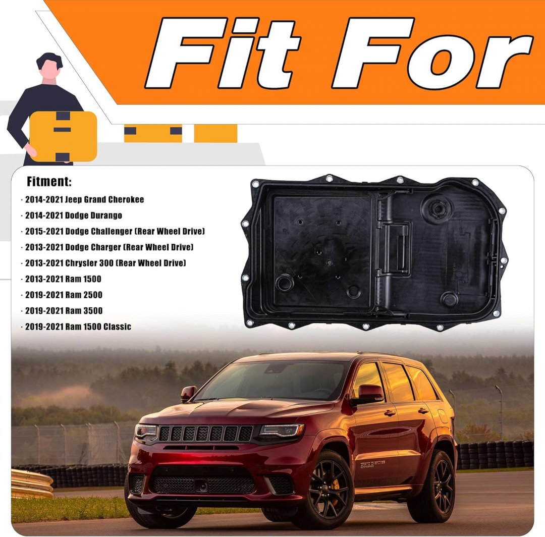 8-Speed Automatic Transmission Oil Pan with Gasket & Drain Plug compatible with with Ram, Jeep, Chrysler, Dodge, Durango - black (model:68225344AA)
