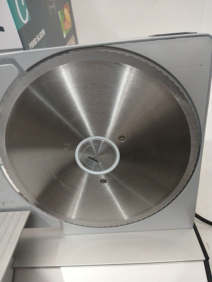Tested for power. The blade stutters when turned on. There is some residue on the blade and surface of the item. Surface is slightly greasy.