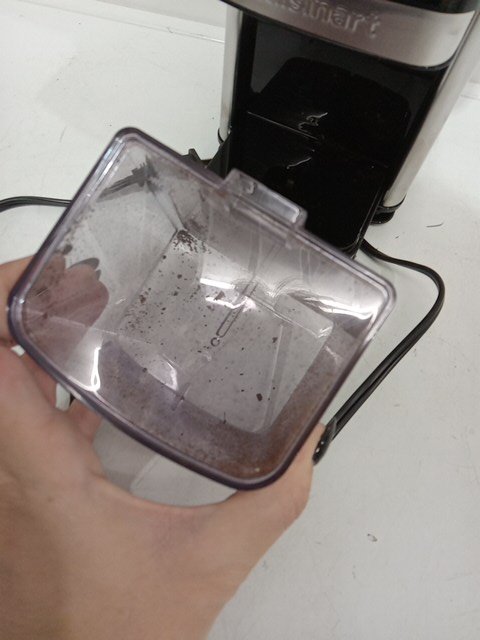there is some left over coffee grinds in the machine, as well on the outside. tested for power.