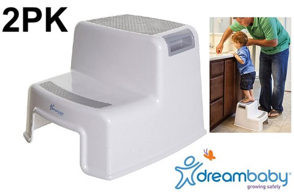 2PK DREAMBABY 2-UP STEP STOOL - 200LBS CAPACITY - 10.5" x 14" x 12.5" - WHITE/GREY- (MODEL: L687/LC687)