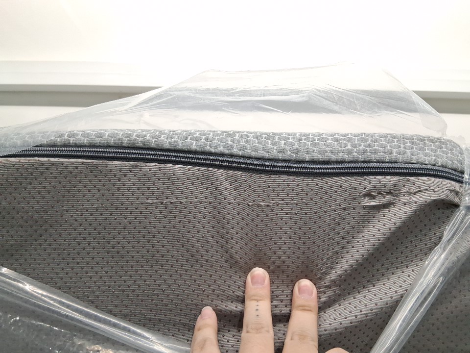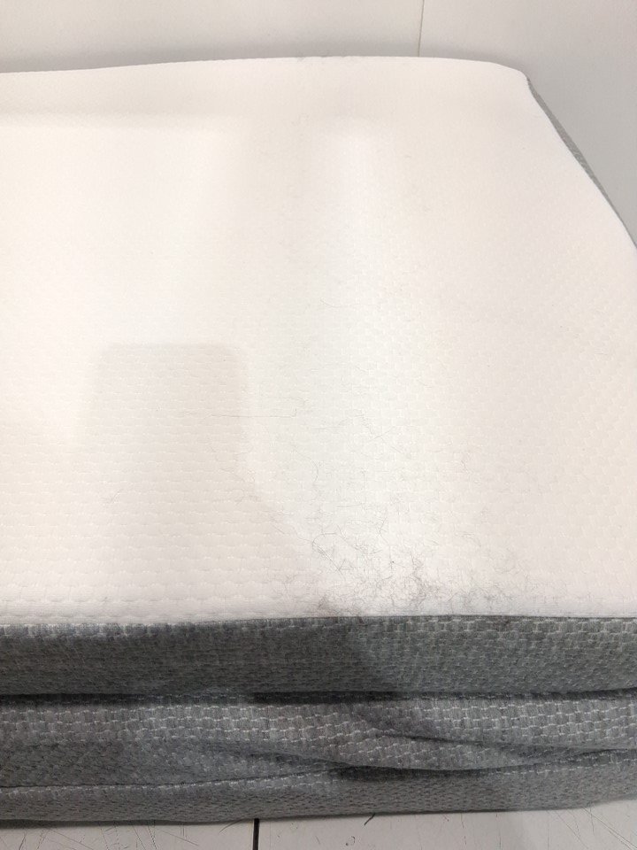 item has black pet hairs on it from previous use and has cut marks - see photos