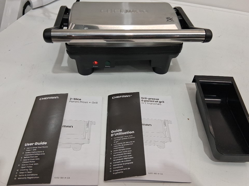 you can see where a sandwich was pressed. very good condition, tested for power.