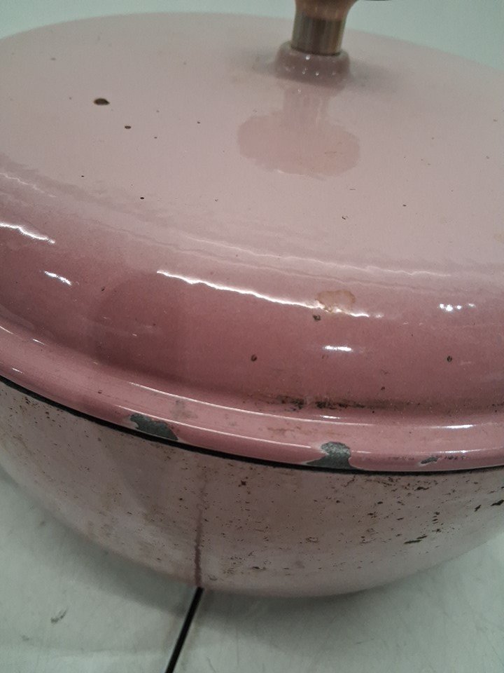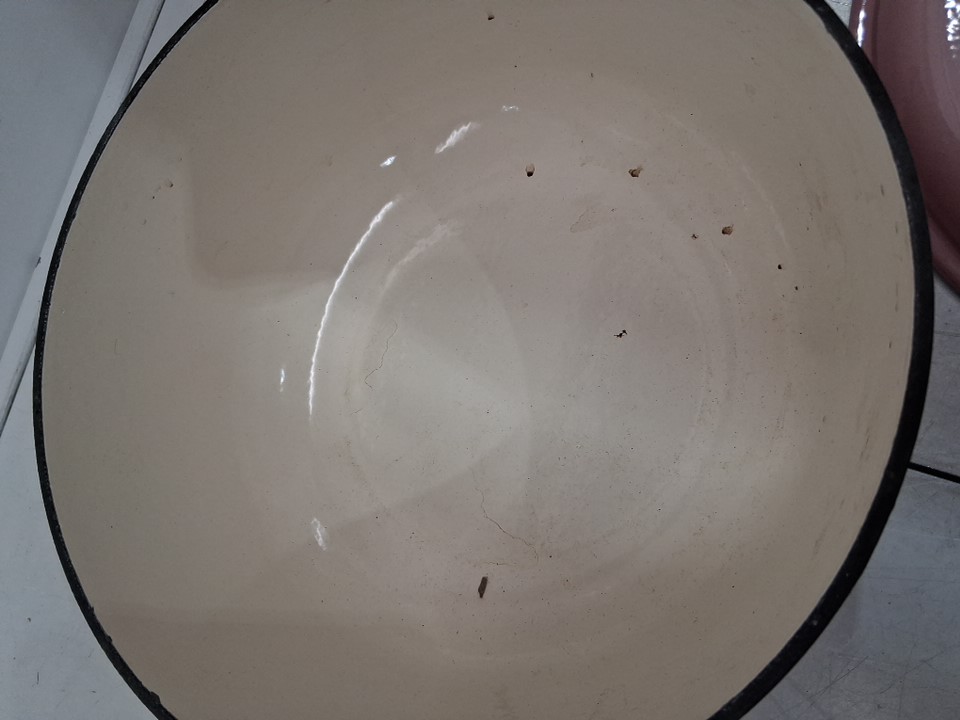 there is chip in the paint on the side of the lid and Dutch oven has been used with food marks, see photos.