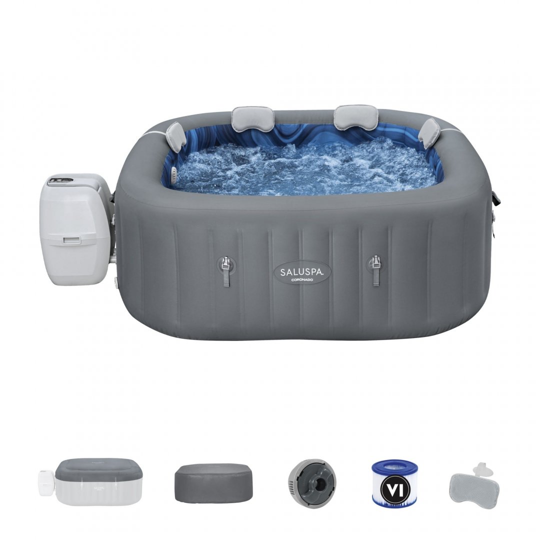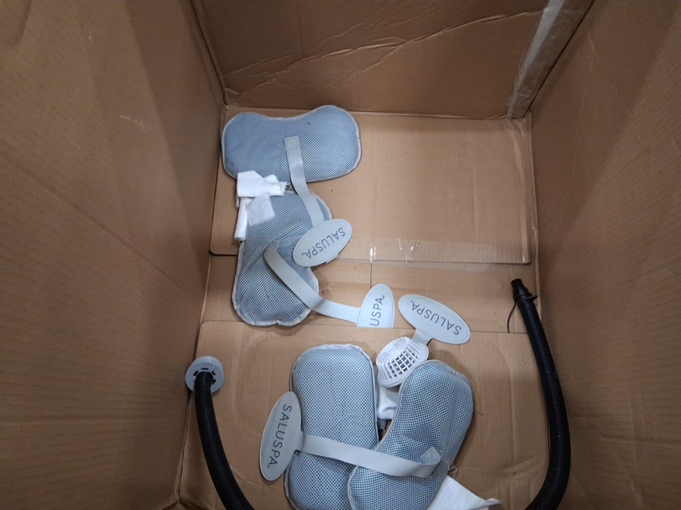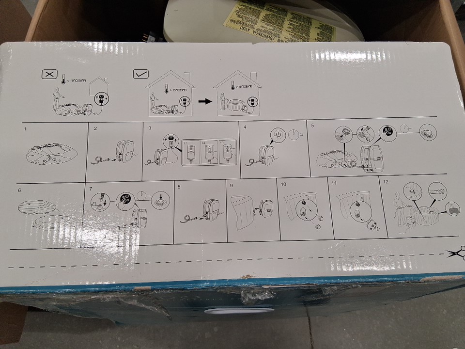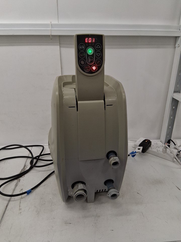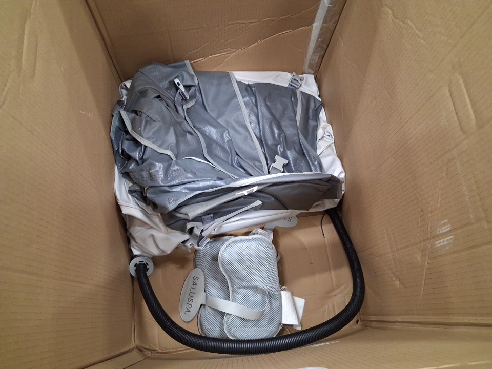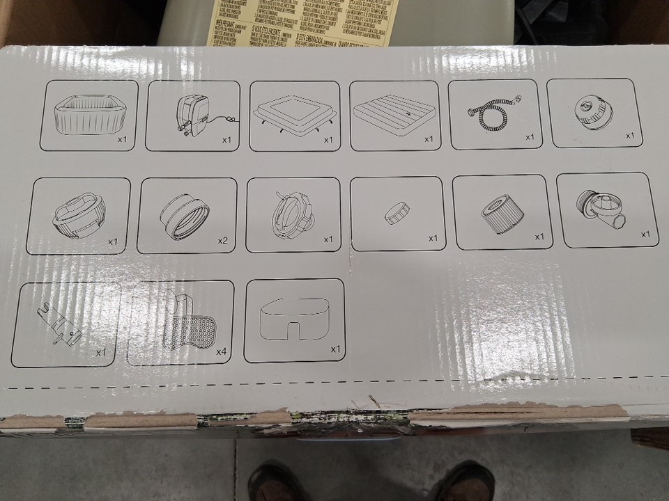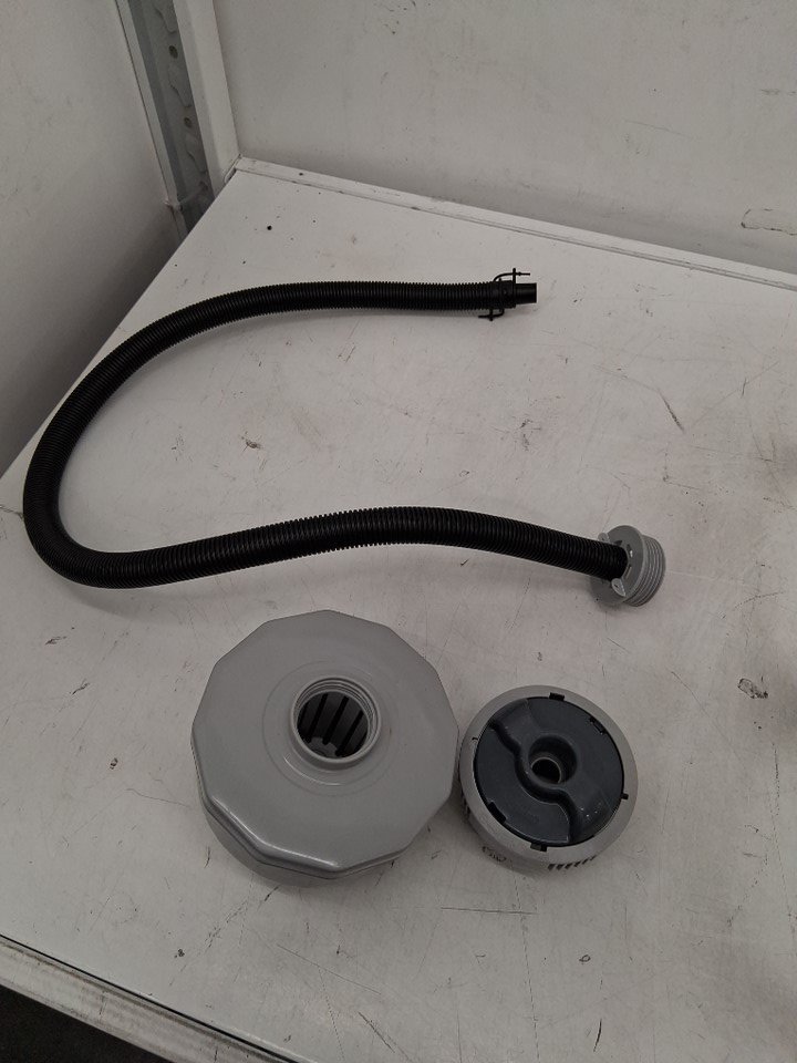 For whatever reason, there is an extra pump and inflatable tub included in the packaging, but no extras of any other part. One pump shows error "E01" on the screen when plugged in (see photos), but the other appears to function normally. Both the pumps and tubs as well as the covers and accessories have some noticeable dirt marks indicating previous setup and use, but there is no visible damage or other obvious issues with any of the parts that would affect setup or function - see photos. Pumps tested for basic power.