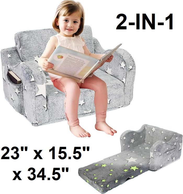 kids 2-in-1 fold out sofa bed - 23" x 15.5" x 34.5" - grey/white stars