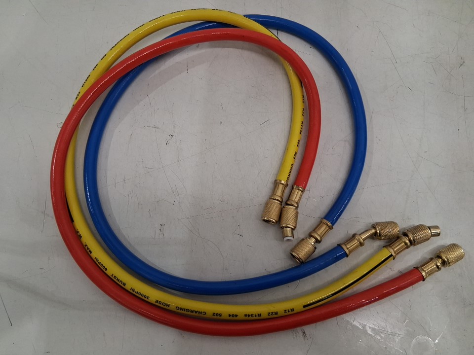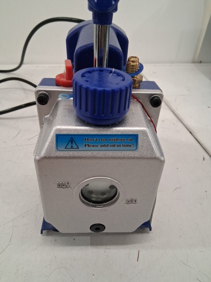 Hydraulic oil leaked out of chamber in packaging, needs refilling. Hoses have been damaged at one end. (See photos)