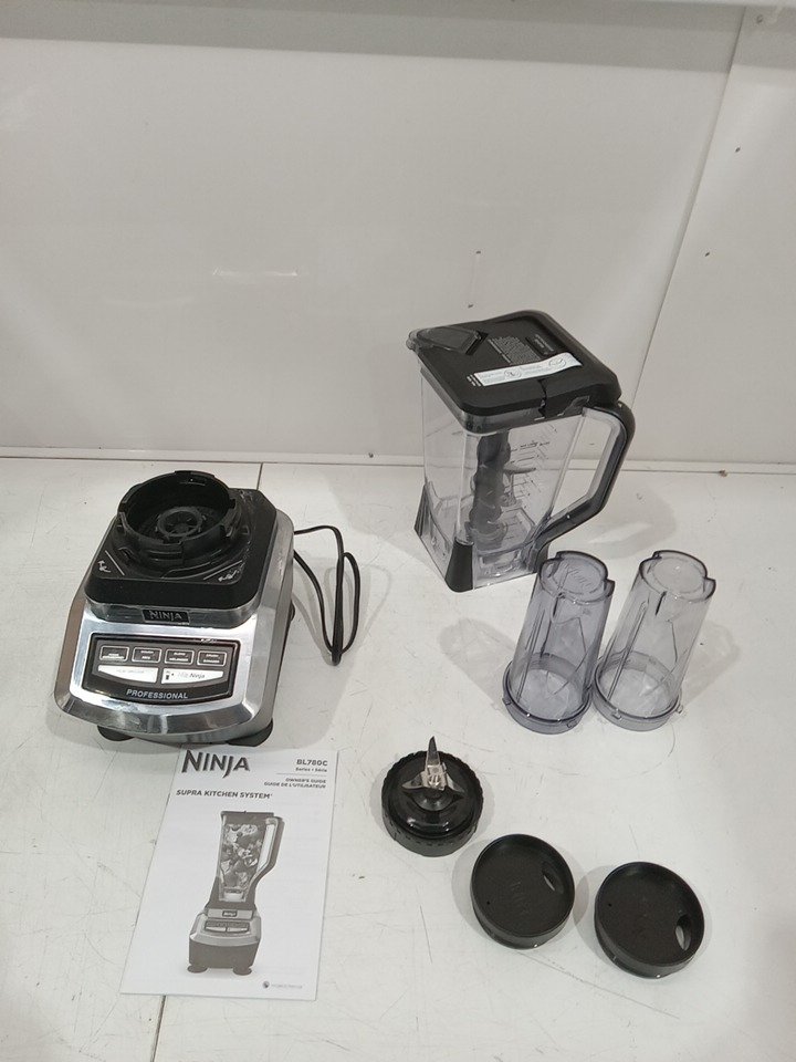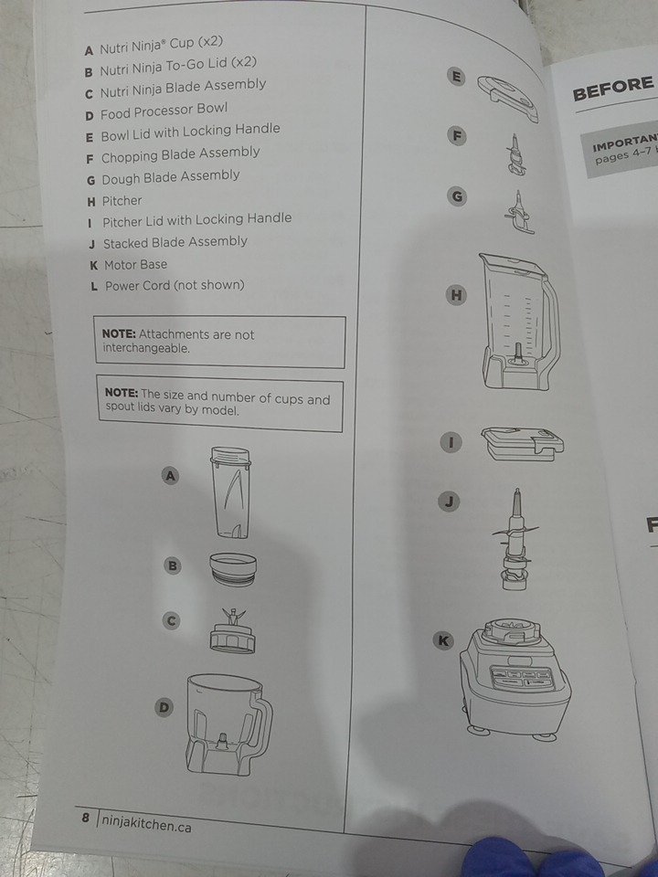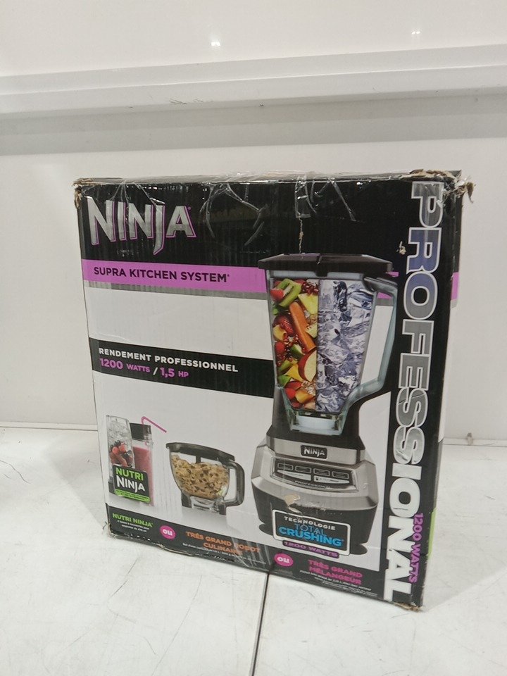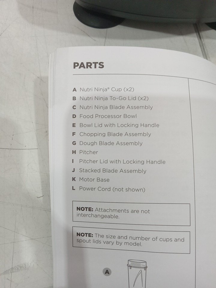 Please note that the food processor bowl set is missing from the original packaging. There are water stains on the pitcher and ninja cup from previous use. There are dirt residue on the motor base. Tested for power and motor function only. (Please see photos)