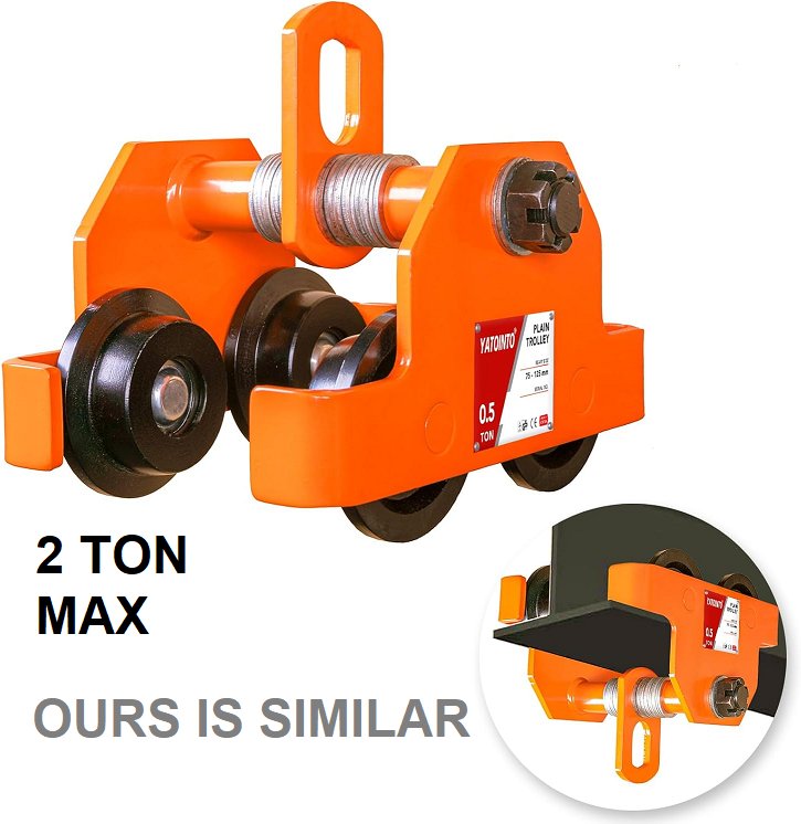 Heavy Duty Dual Wheels Manual Plain Trolley for I Beam Flange -2ton - ORANGE -(model:gct)