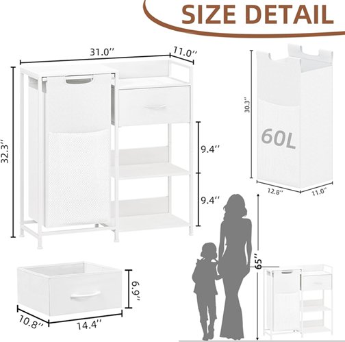 Somdot Wooden Laundry hamper with mesh net - 31'' x 32'' - White (Model : ‎LB105)