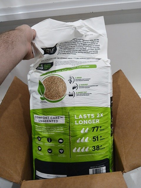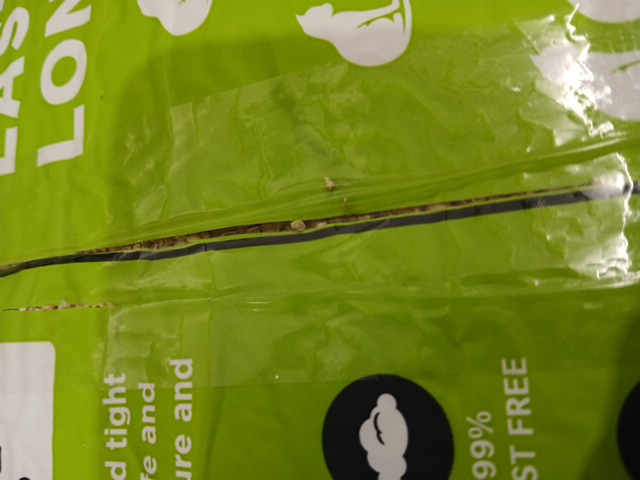 The product has not been opened, however there is a small cut on the bag.