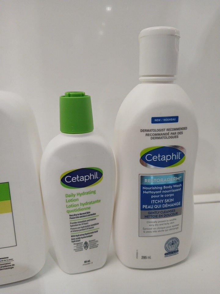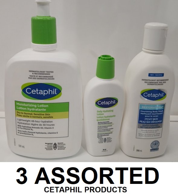 3 ASSORTED CETAPHIL PRODUCTS - daily hydrating lotion/ moisturizing lotion/ nourishing body wash