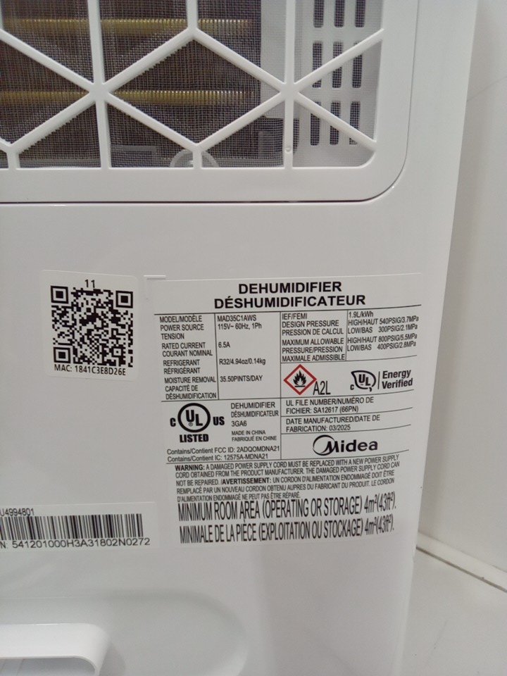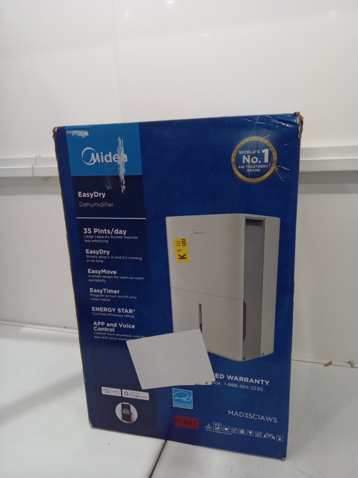 MIDEA EASYDRY DEHUMIDIFIER with AUTO SHUT-OFF, TIMER & WHEELS - 3000sQ.FT, 35PT - WHITE (MODEL: MAD35C1AWS)