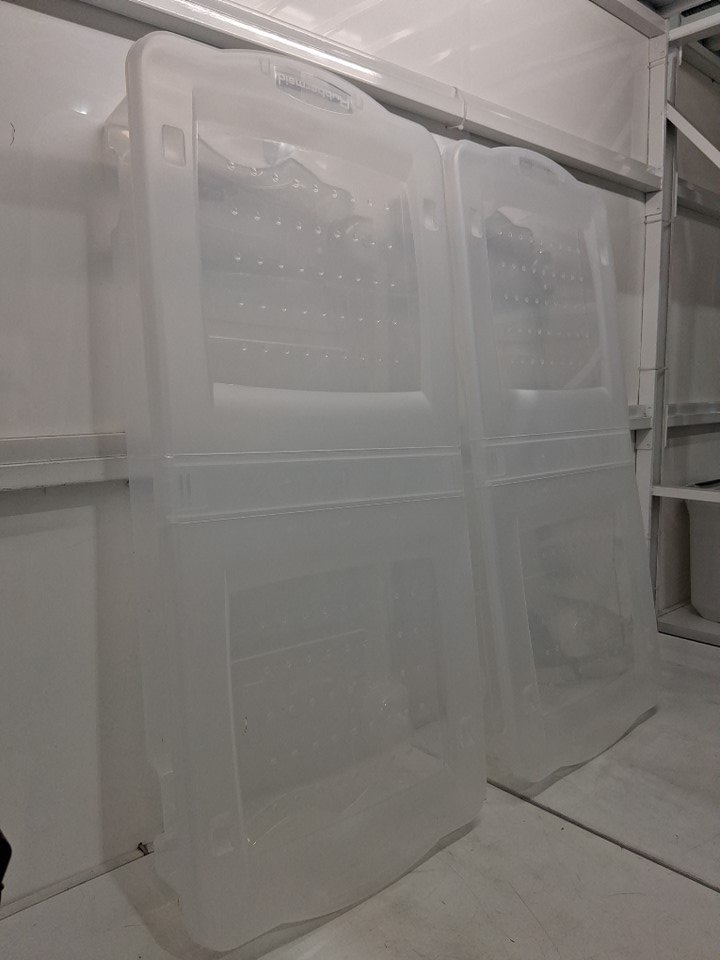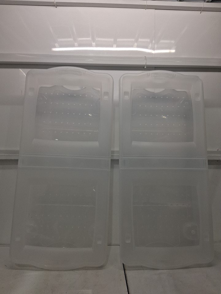 one of the lids has a minor cut on top and also both items are missing the wheels, please see pictures