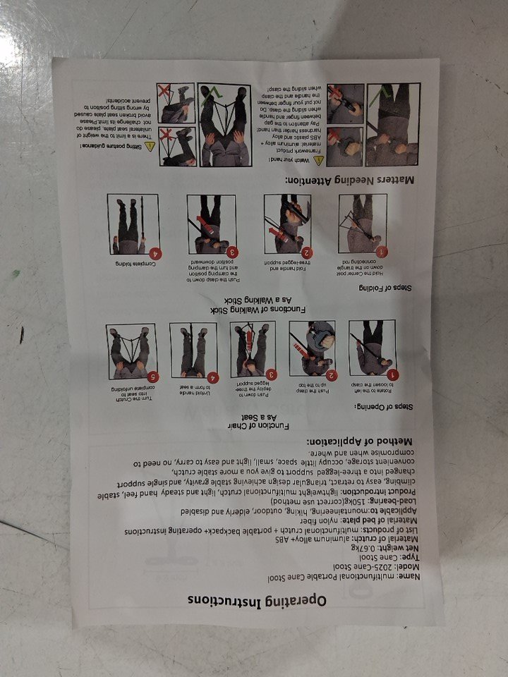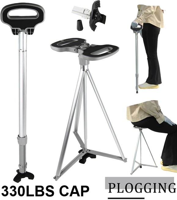 PLOGGING Lightweight Anti-Slip Walking Stick with PORTABLE SEAT AND Carry Bag - 330LBS CAP - SILVER/BLACK (MODEL: KQ-T1)
