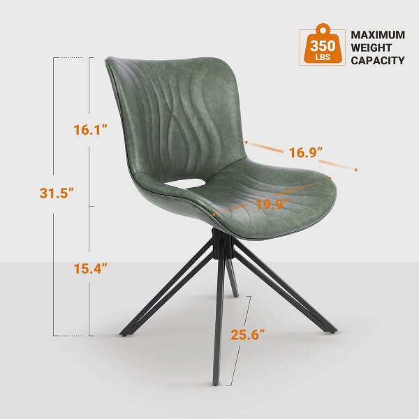 2PK GEORGE OLIVER Upholstered Mid-century Modern Swivel Dining Room Chairs - 350lb max load - green (model: dmt-3-884gn)