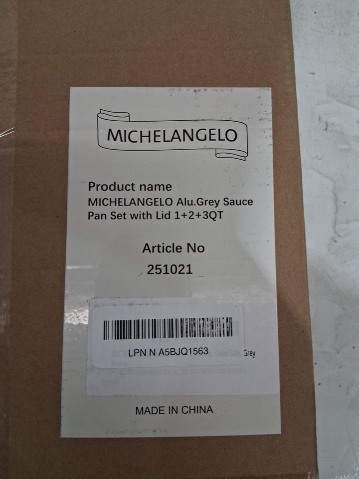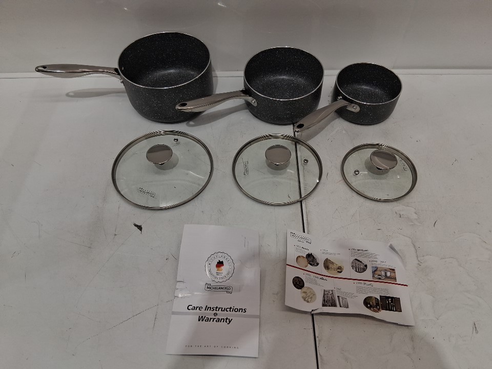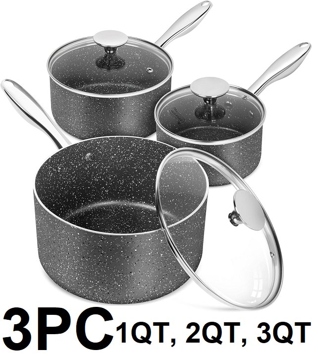 3PC MICHELANGELO Non Stick Sauce Pan Set with Lids - 1QT, 2QT, 3QT - Granite grey