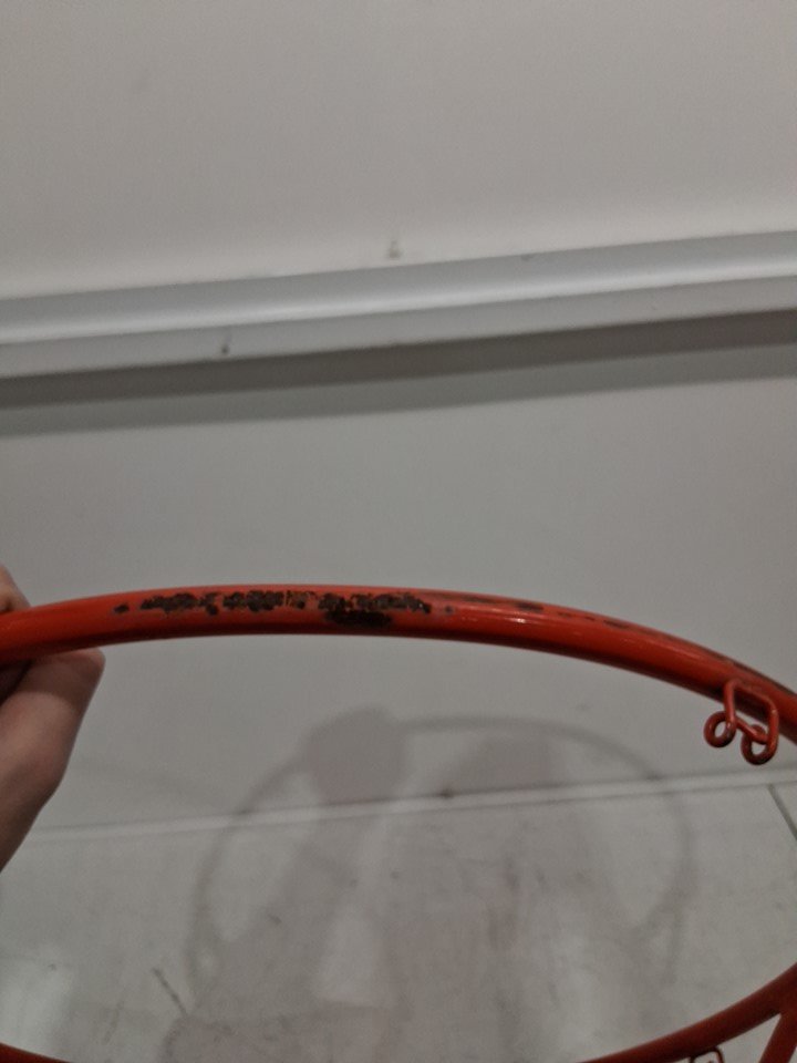 Missing the brackets, net, springs and hardware. Also, the rim is starting to get paint chips/rust from previous use