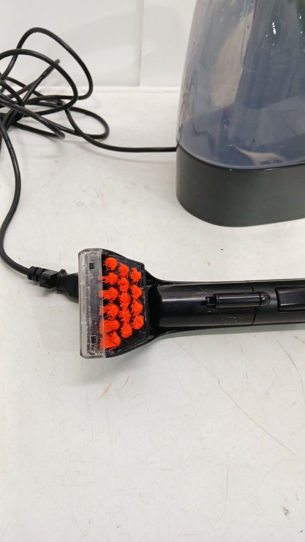 there is water in the reservoir as well as dirt on the brush head from previous use, we are also missing the accessories and the front clip for the hose (tested and working, no indicator light)