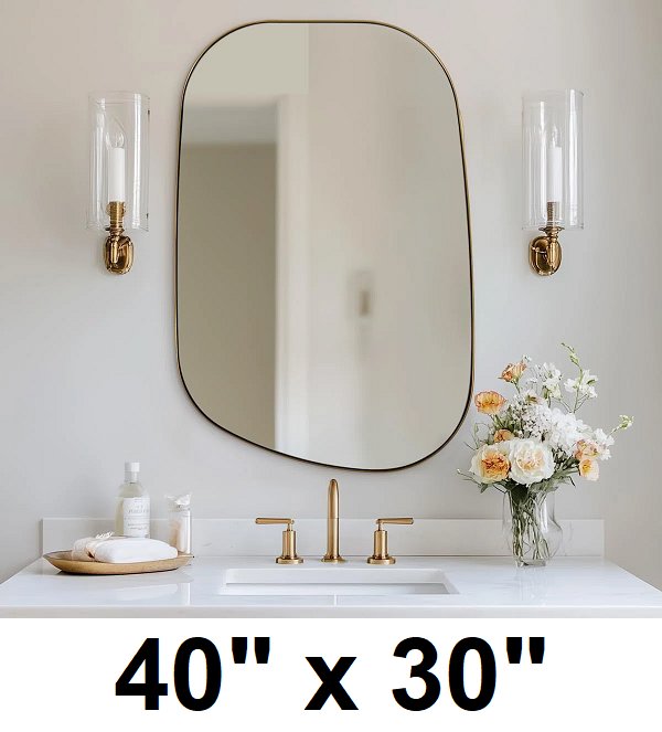 mercer41 huldrik irregular bathroom wall mirror with stainless steel frame - 40" x 30" - gold (model: t03-s10-irregular-3040g)