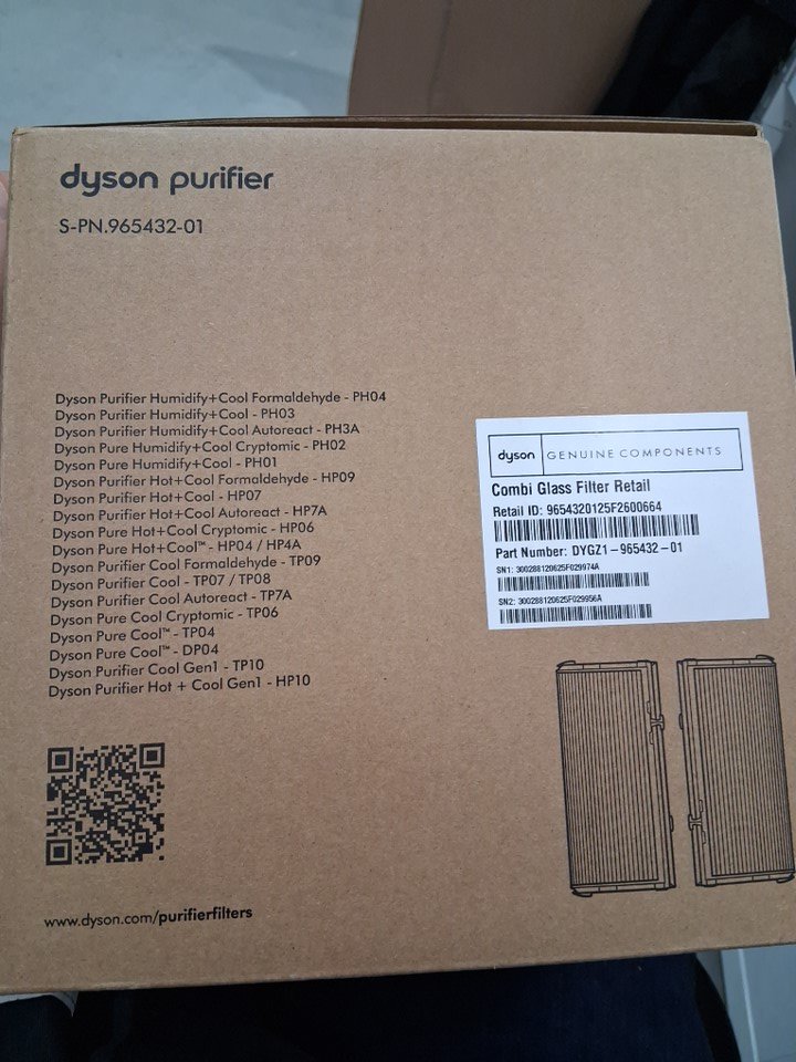 2PK DYSON REPLACEMENT FILTERS 360° COMBI GLASS PURIFYING FANS - FOR DYSON FANS - WHITE/BLACK (MODEL: 965432-01)