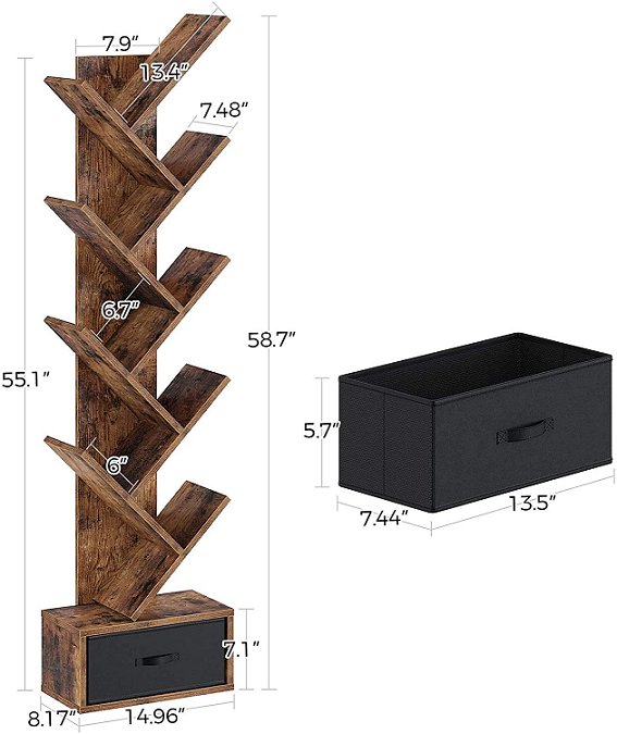 ROLANSTAR TREE 9-TIER BOOKSHELF WITH DRAWER - BROWN 55'' X 14'' (MODEL: BC004-YW-RR)