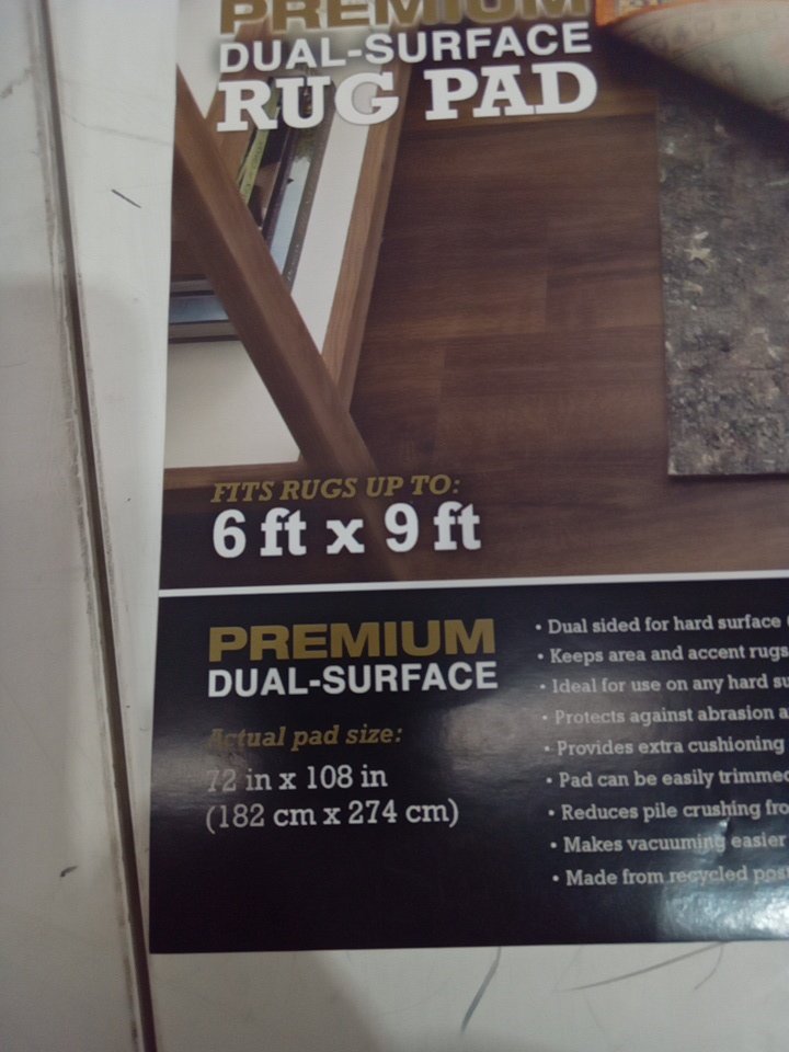 dual surface NON SLIP RUG PAD - 0.5" THICK - 6FT X 9FT
