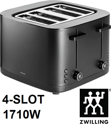 ZWILLING ENFINIGY EXTRA WIDE SLOT 7 SETTING TOASTER - 4 SLOTS (1.5" PER) - BLACK (MODEL:53102-3)