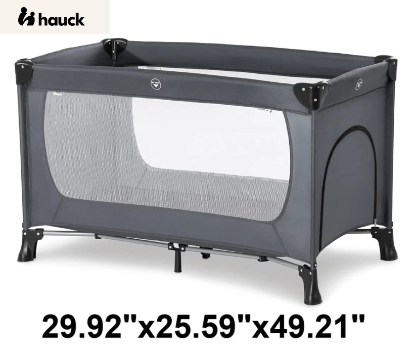 hauck Dream N Play Plus Travel Pack Cot, Babies - UPTO 33LBS - 29.92"X 25.59"X 49.21" - GREY (MODEL: 603611)