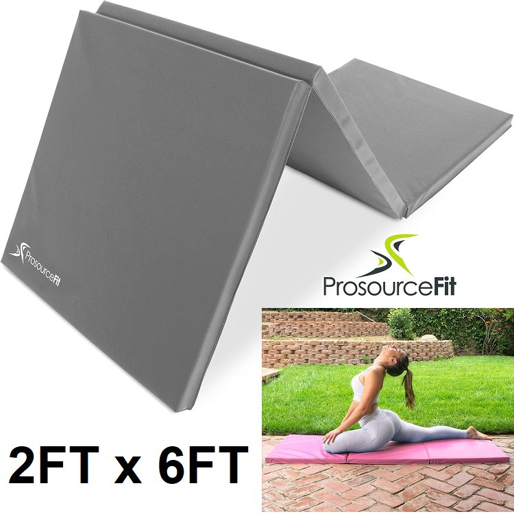 prosourcefit tri-fold Folding Exercise Mat with Carrying Handles - 6ft x 2ft x 1.5" - grey (model: ‎ps-1951-tfm-grey)