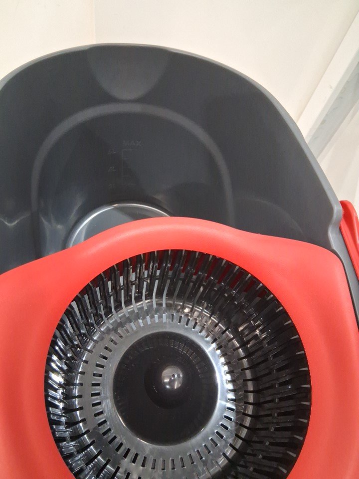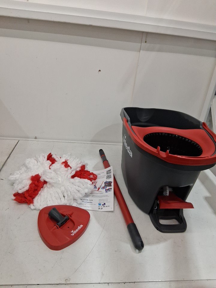 VILEDA EASYWRING POWER SPIN BUCKET SYSTEM WITH EXTENDABLE POLE and 2 mop heads- 22" - 48" - GREY/RED - (MODEL: 172880)