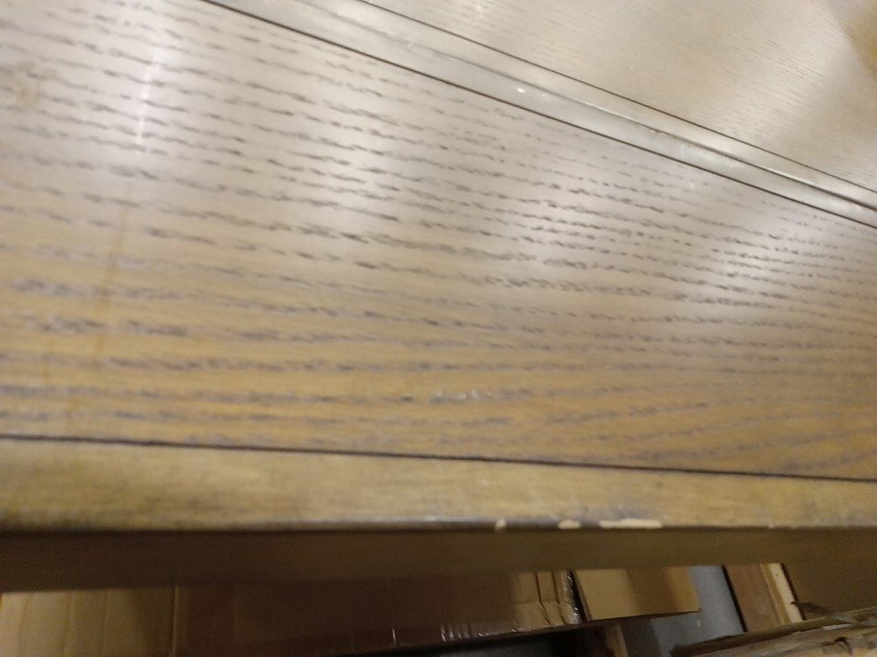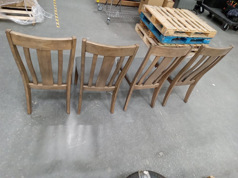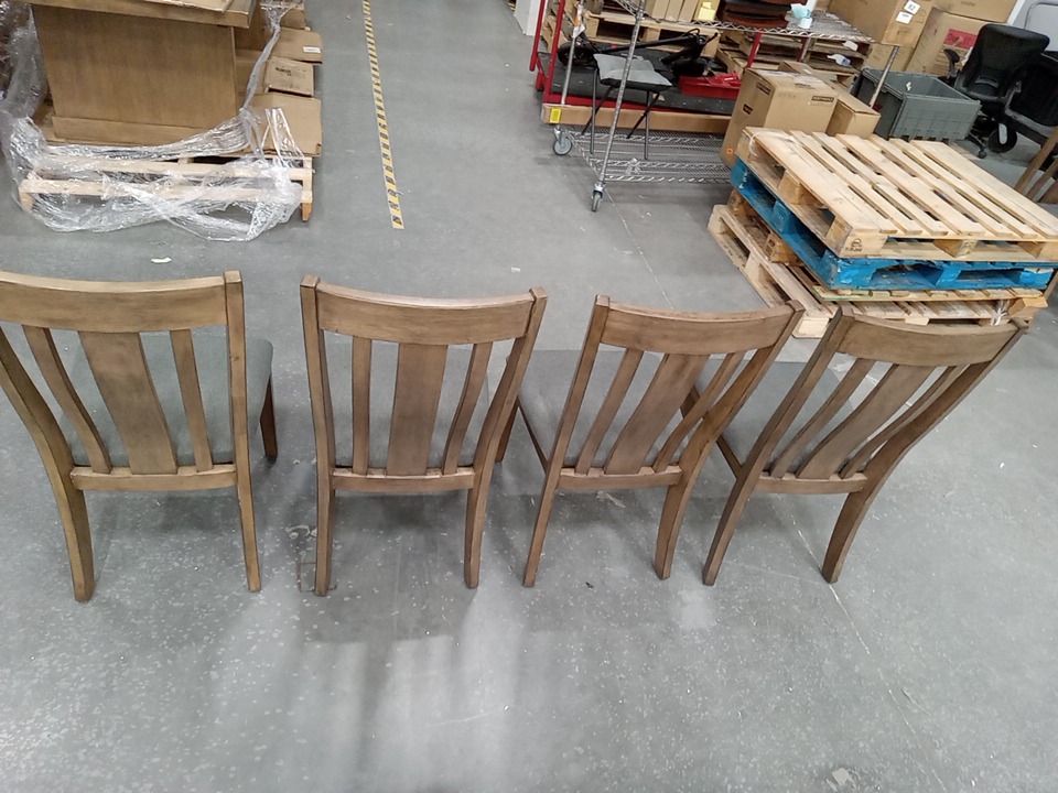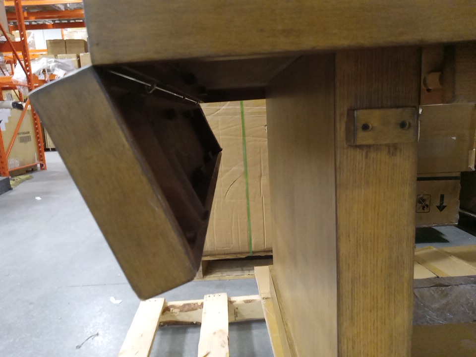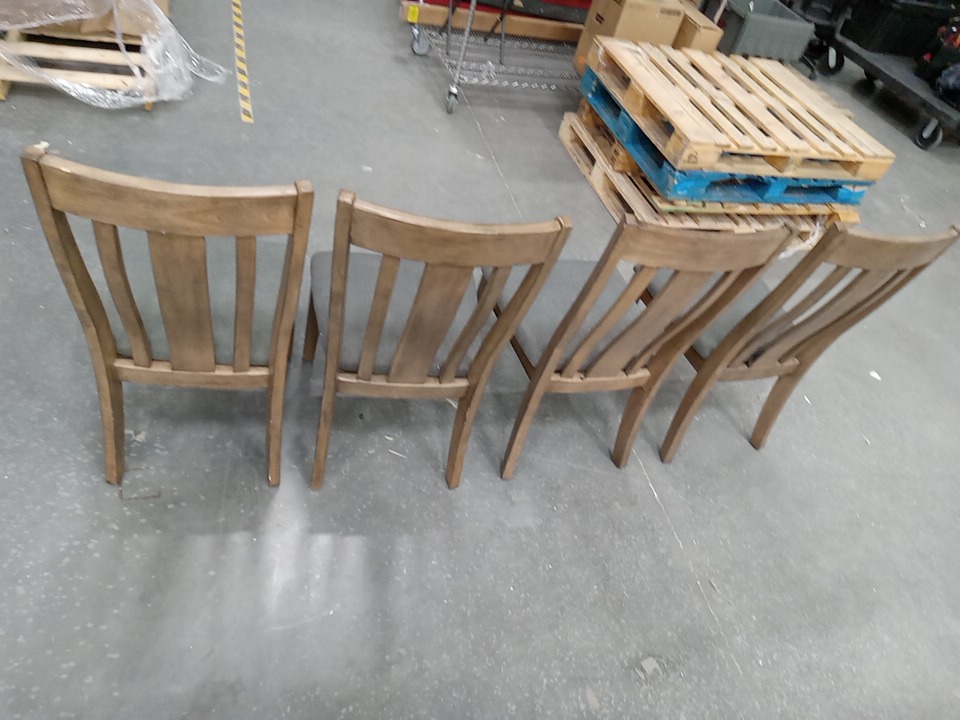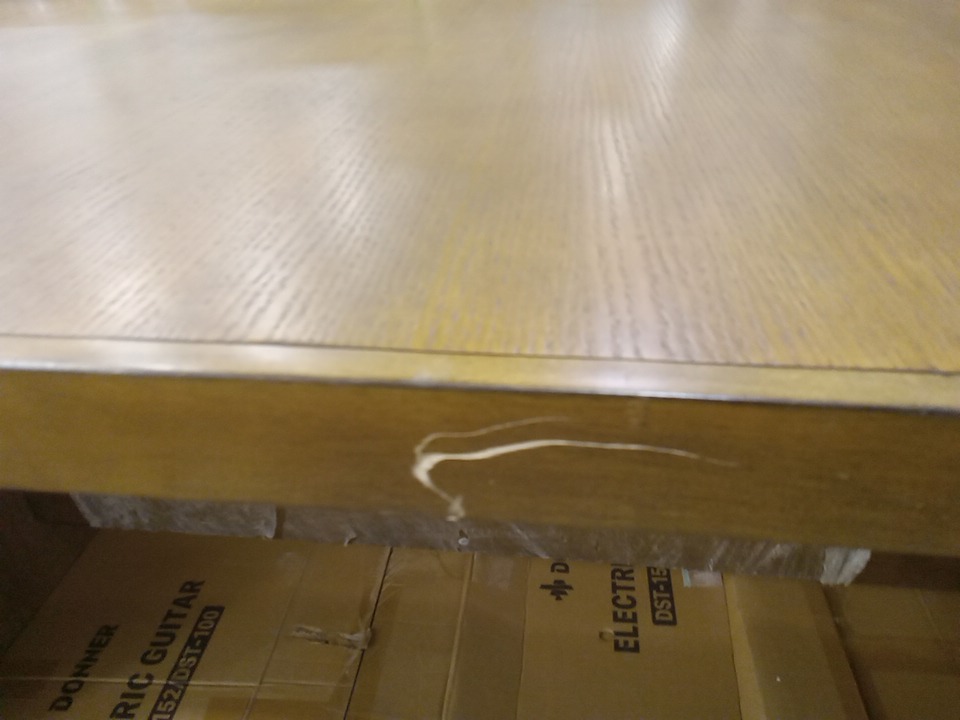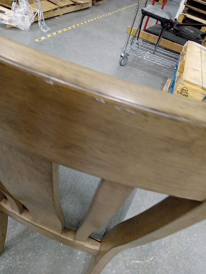 There are multiple scratches and chipping present on the edge of table and chairs from previous use and loose shipping. Lock of one adjustable levelers is broken. Please note this item is big and heavy, bring appropriate vehicle and help at the time of pick up. ~This item retails for 1499$~