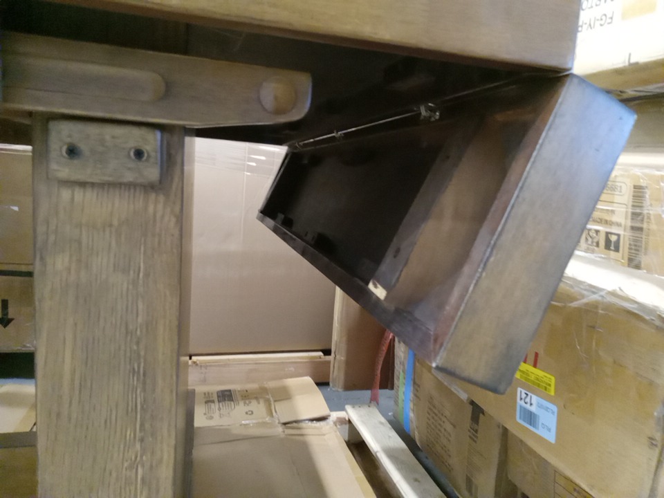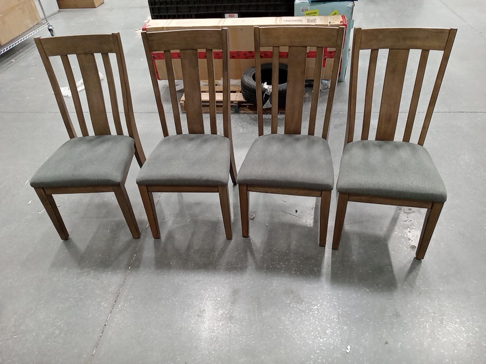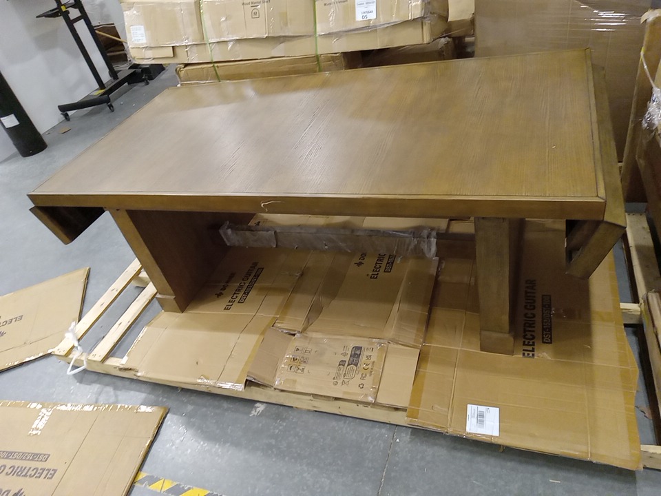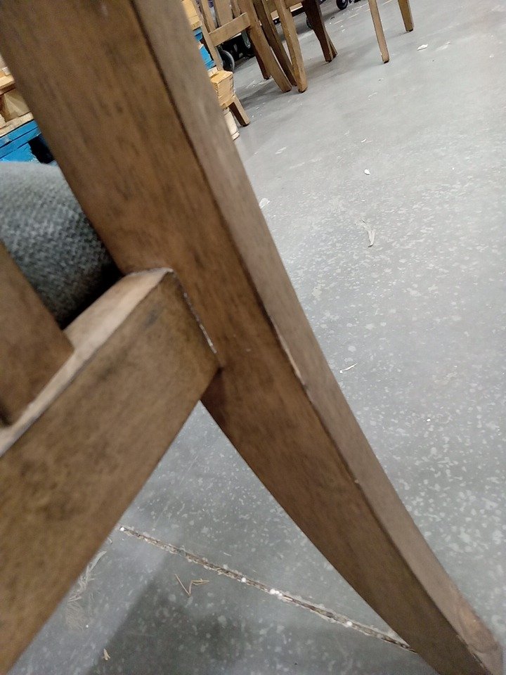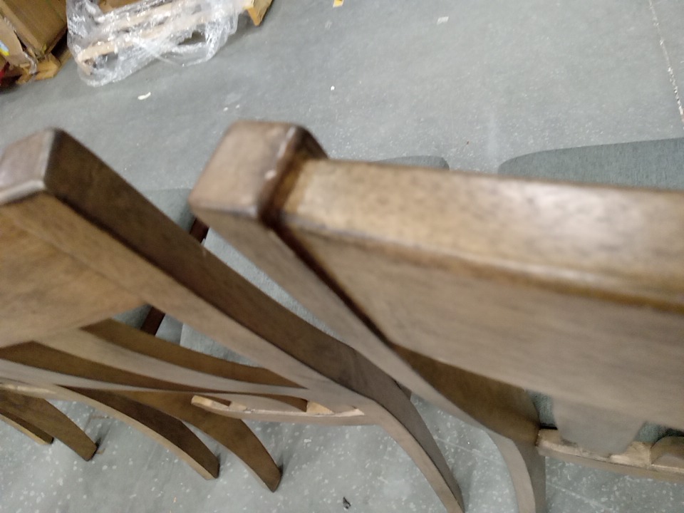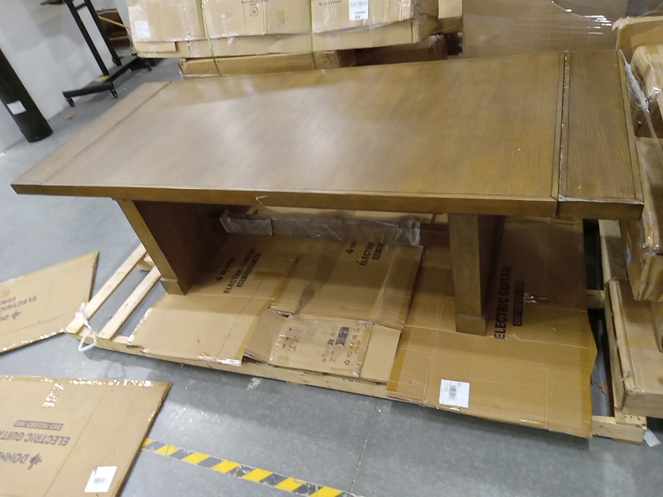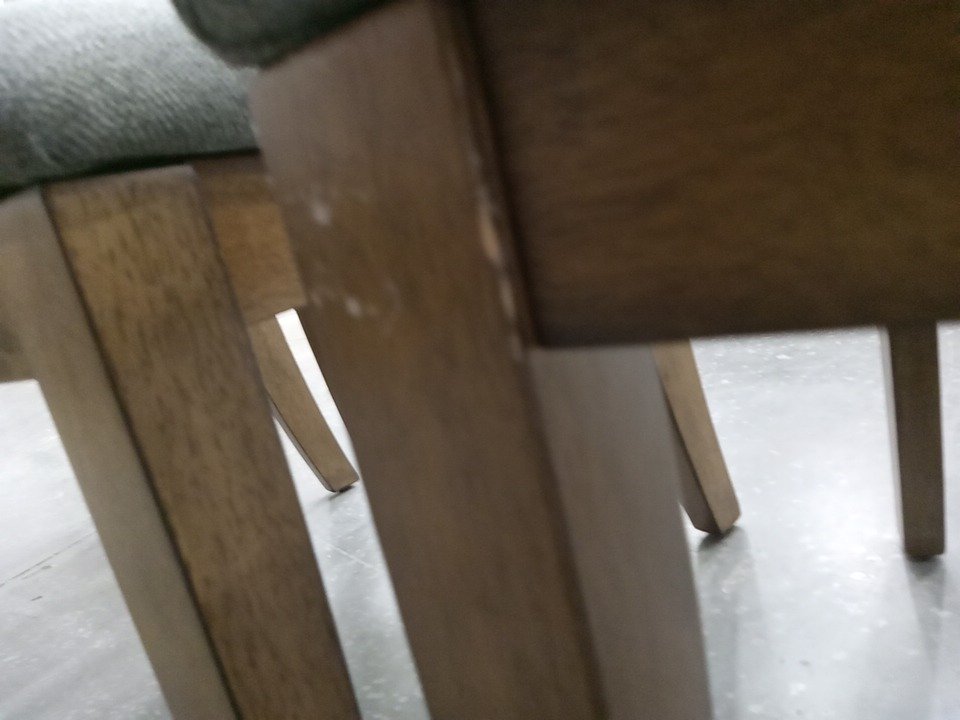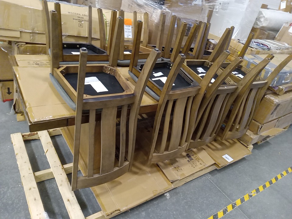 There are multiple scratches and chipping present on the edge of table and chairs from previous use and loose shipping. Lock of one adjustable levelers is broken. Please note this item is big and heavy, bring appropriate vehicle and help at the time of pick up. ~This item retails for 1499$~
