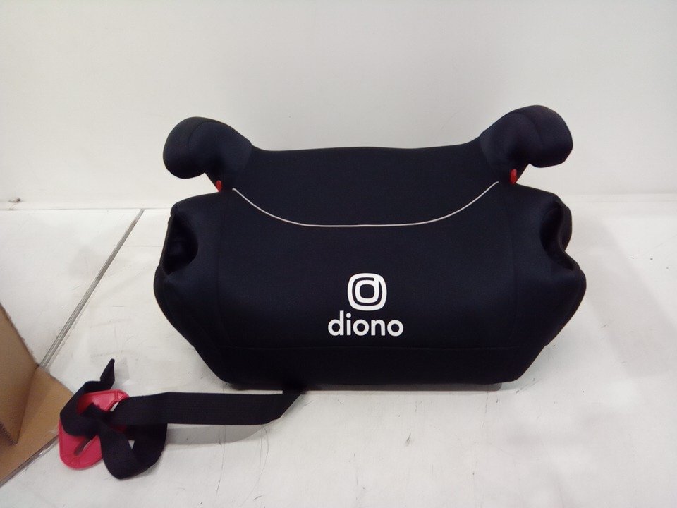 DIONO SOLANA NO LATCH SINGLE BACKLESS BOOSTER CAR SEAT WITH CUP HOLDERS, 40LBS-120LBS - BLACK (MODEL: 32050-NA-01)