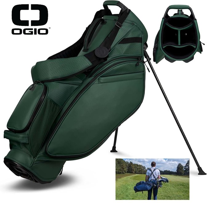 OGIO faux leather 4 slot golf bag with built in stand and rain cover - green