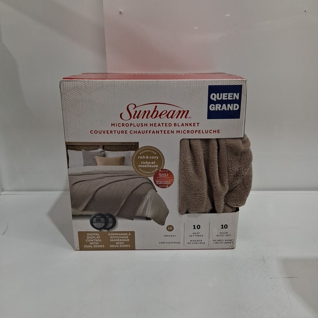 SUNBEAM MICROPLUSH ELECTRIC HEATED THROW BLANKET WITH 10-HEAT SETTINGS & DUAL PADDLES - QUEEN - MUSHROOM - (MODEL: 1580354)