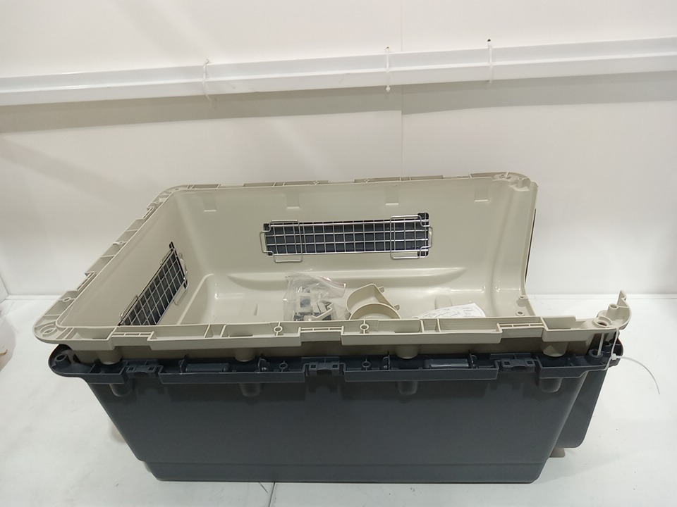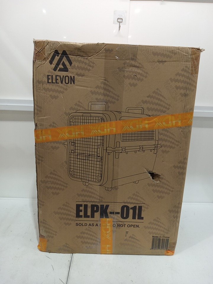ELEVON ROLLING PET CARRIER WITH WIRE DOOR AND WHEELS - 30" x 21" x 22" - navy blue/beige (MODEL: ELPK-01L)