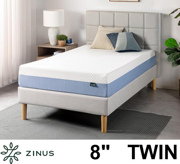 Zinus Essential Foam Mattress Pressure Relief for Cool Sleep - TWIN - 8" - BLUE/WHITE