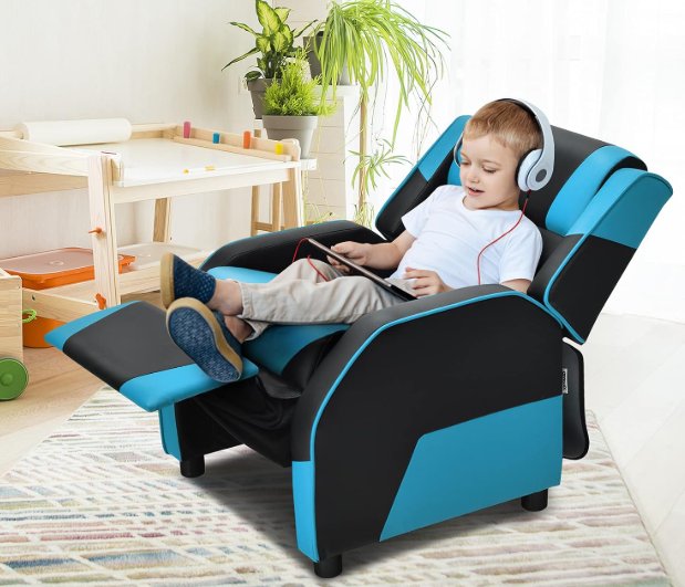 Kids Youth PU Leather Gaming Sofa Recliner with Headrest and Footrest - BLUE (MODEL: HW66874BL)