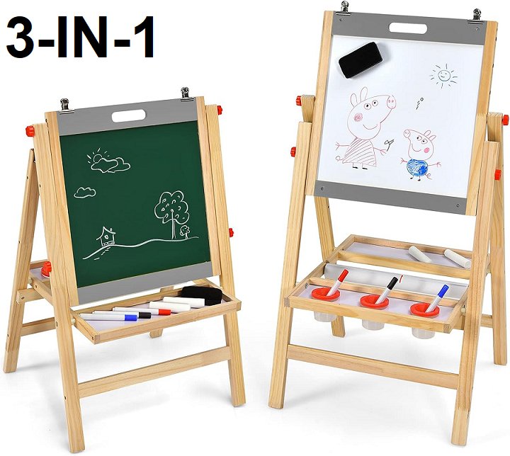 COSTWAY 3-in-1 kids double sided adjustable Whiteboard, Chalkboard & Drawing Paper - 41" x 19.8" x 21" - grey (model: ty327950gr)