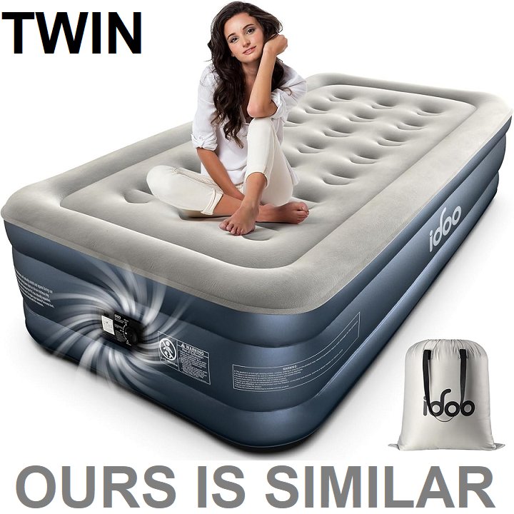 MHERIMOR inflatable travel air mattress with built in pump - twin - 18" - grey/navy (model: jh-628)